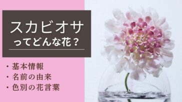 花の基本情報 スカビオサってどんな花?基本情報から名前の由来・花言葉などを紹介! こんにちは。花を買う人です。今回はスカビオサについてまとめてみました。スカビオサの基本情報から、名前の由来や花言葉などをご紹介します。2022年4月から毎週花を一輪購入し飾っています。花について知識を深めて、より花を楽しみましょう~。 2022.10.11 2025.11.19 花の基本情報