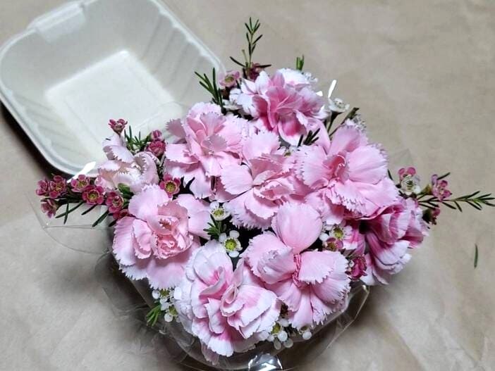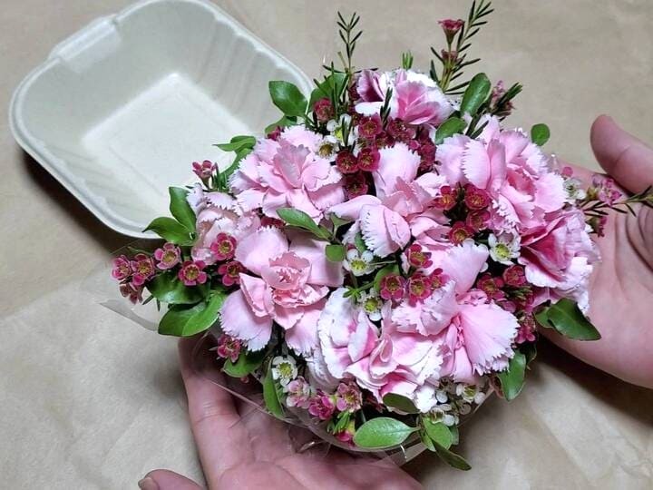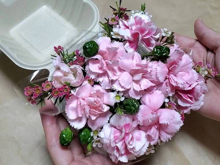 初めてにしては可愛くできたのではないでしょうか!自分自身で作ったという贔屓目もあるとは思いますが、このランチボックスに花をたくさん詰めるのは、ものすごく可愛いなと思いました。